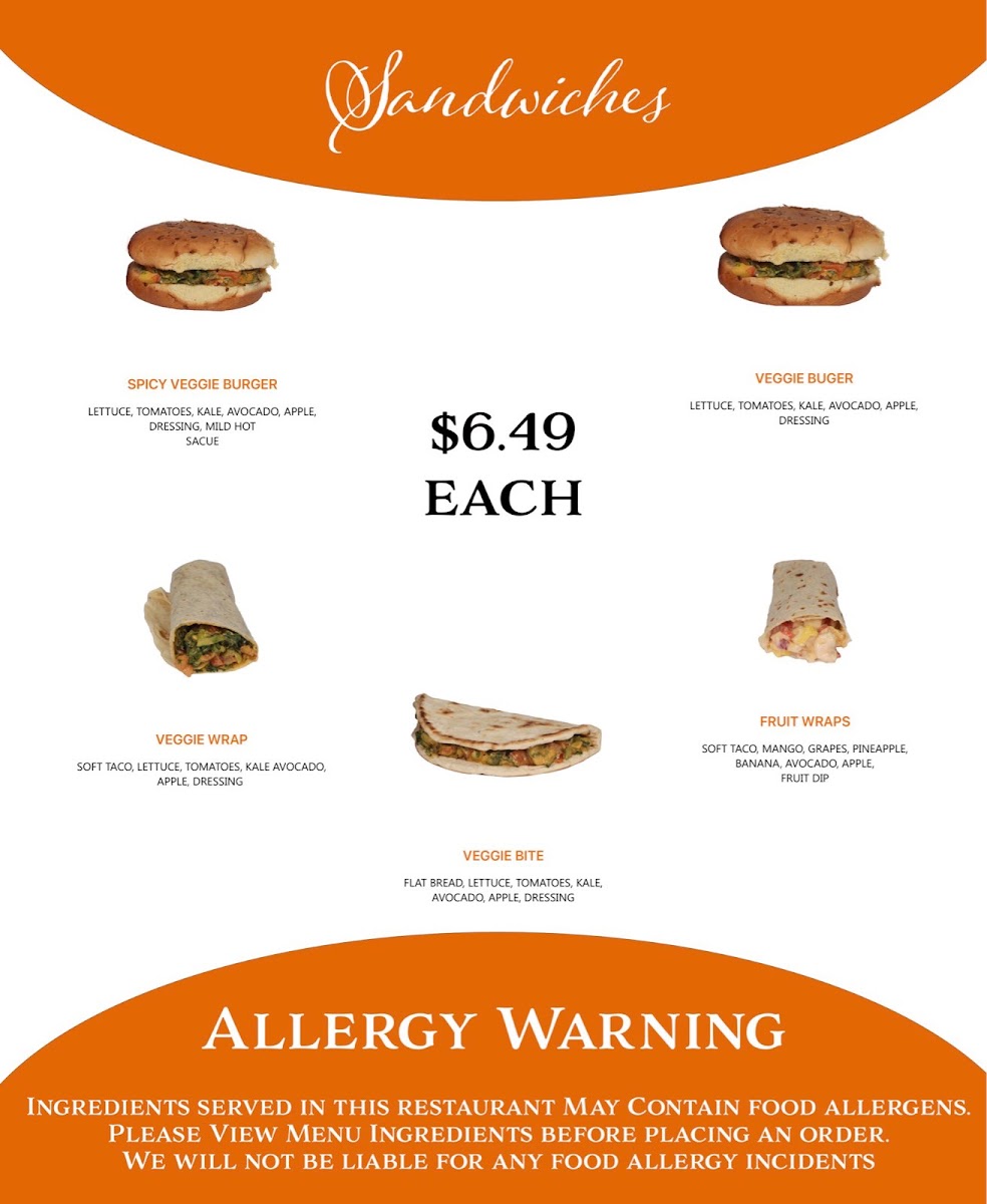 Our burgers and subs are made with fresh organic fruits ,and vegetables each day, it's also made with love